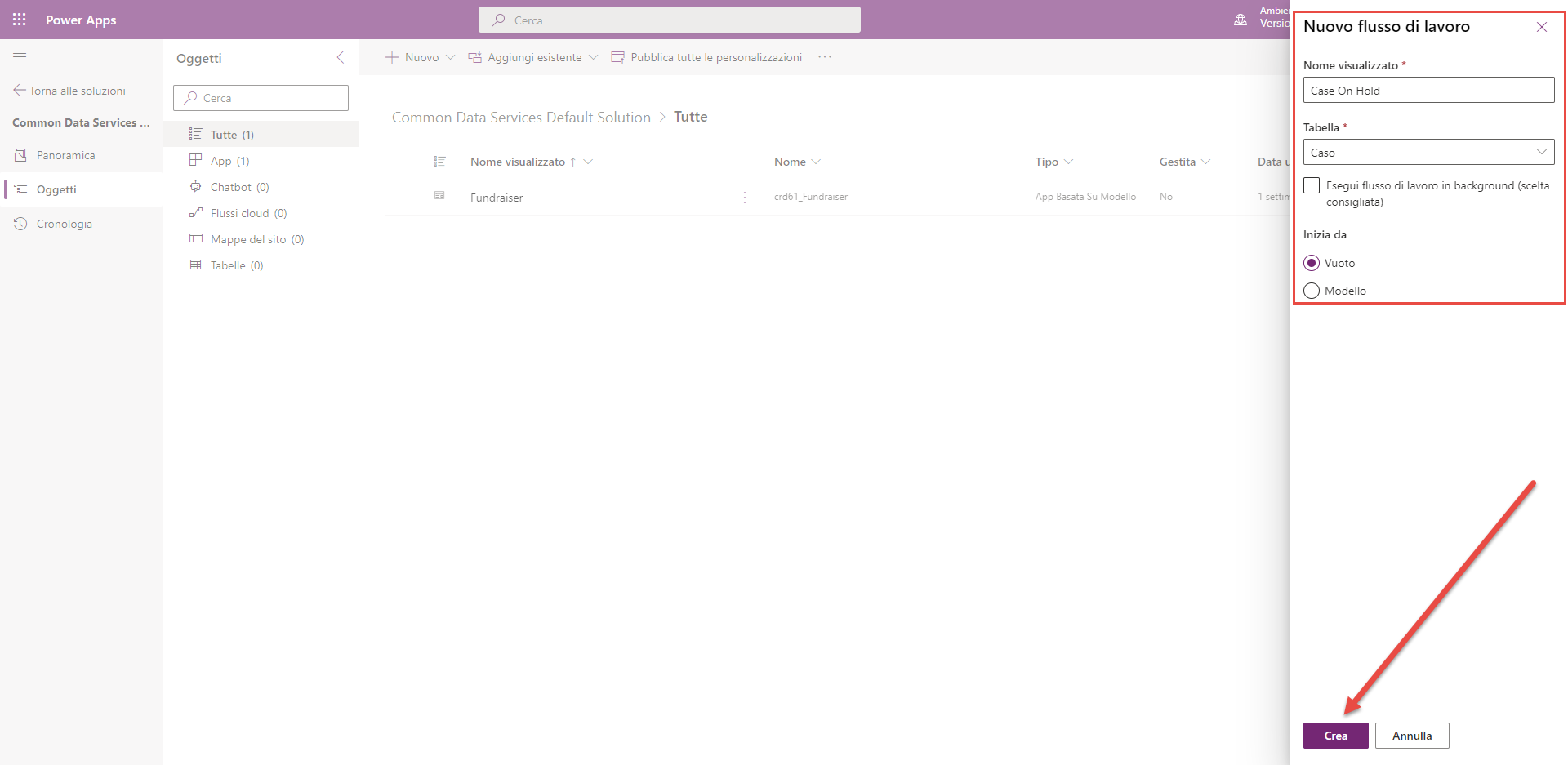 Creare un nuovo flusso di lavoro per una tabella di casi.