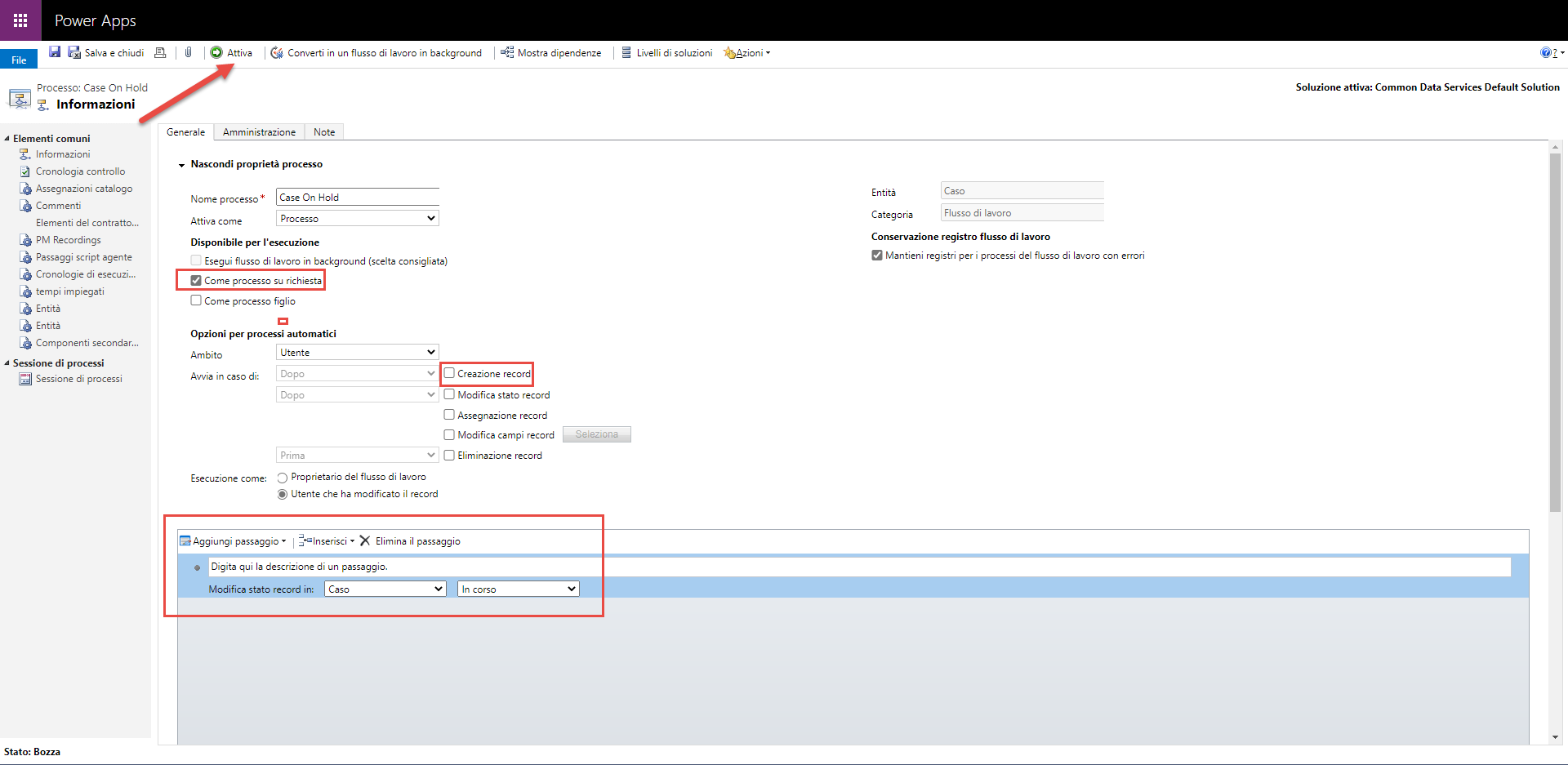 Creare un flusso di lavoro in tempo reale per la tabella Case, tale da impostare lo stato dei casi su In sospeso.