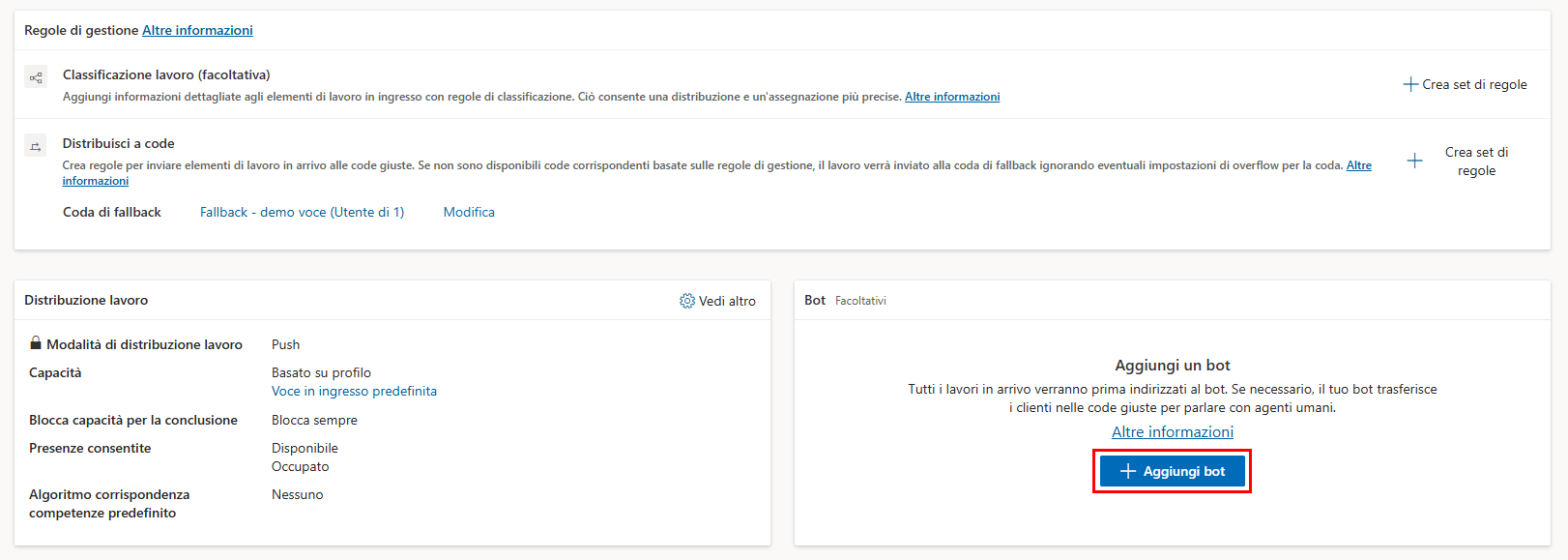 Il modo più semplice per impostare un agente per le funzioni vocali è dall'Interfaccia di amministrazione di Customer Service o dall'interfaccia di amministrazione di Multicanale. L'obiettivo dell'Interfaccia di amministrazione di Customer Service è amministrare Dynamics 365 Customer Service e la funzionalità multicanale, mentre l'interfaccia di amministrazione di Multicanale si concentra sull'amministrazione della funzionalità multicanale. Qualunque attività si svolga nell'interfaccia di amministrazione di Multicanale, è possibile effettuarla nell'interfaccia di amministrazione di Customer Service.
