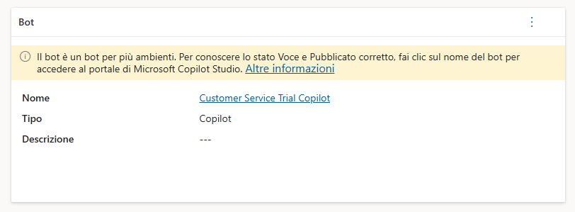Dopo aver specificato l'agente, informazioni dettagliate sul bot associato all'elemento sono visibili nella sezione Agente.