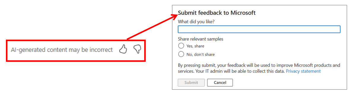 Gli utenti possono fornire commenti e suggerimenti sul contenuto generato.
