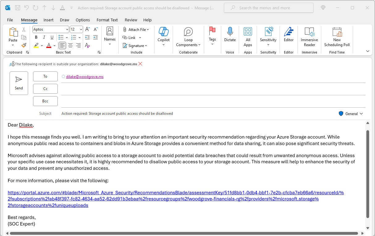 Esamina l'e-mail e aggiungi i destinatari, quindi seleziona Invia.