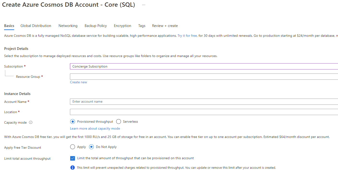 - Facoltativo: velocità effettiva con provisioning se non si usa un account serverless.