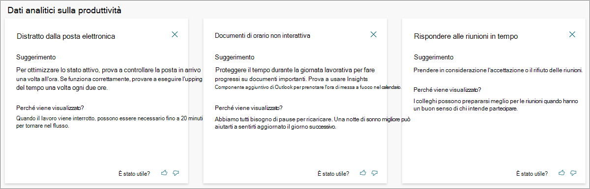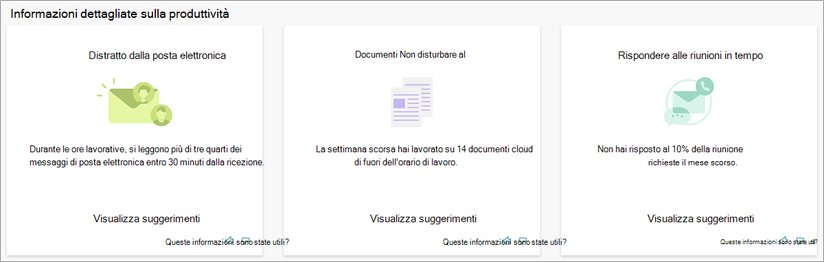 - Collaborazione : suggerimenti su come pianificare il calendario, dedicare meno tempo a riunioni di bassa qualità e scrivere messaggi di posta elettronica più efficaci.