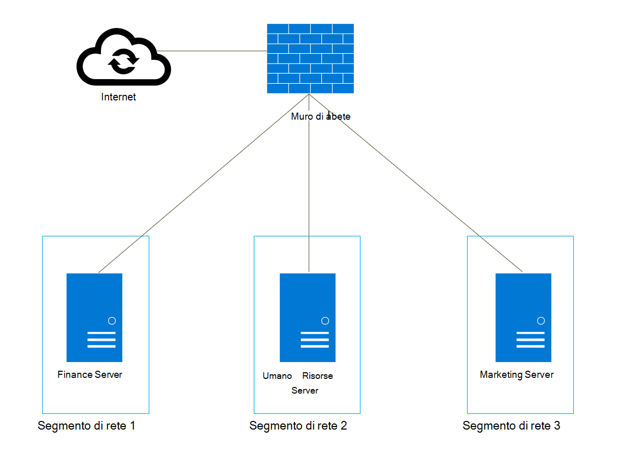 La segmentazione di rete crea una linea di confine per operazioni o asset critici, nello stesso modo in cui si metterebbe il team finanziario nel proprio ufficio. Migliora l'integrità degli asset di rete garantendo che, anche se la rete viene violata, l'utente malintenzionato non possa raggiungere le aree segmentate.