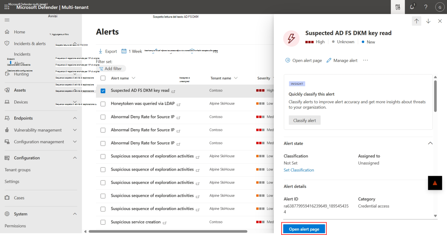 Passare alla pagina Avvisi in Microsoft Defender gestione multi-tenant.