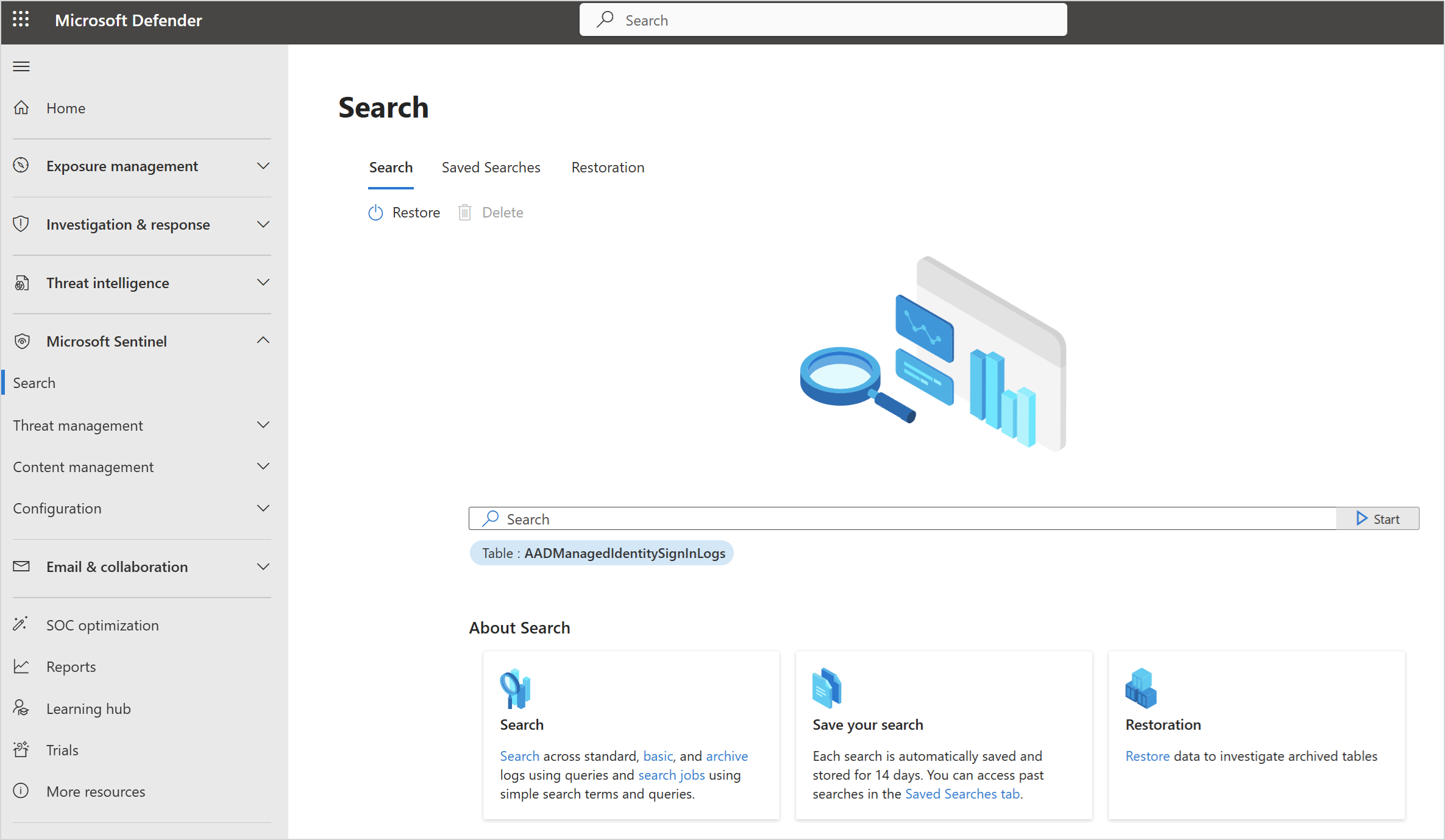 | Rilevazione avanzata | Esplorare ed eseguire query fino a 30 giorni di dati non elaborati. È possibile eseguire query usando uno strumento di query guidato, usare query di esempio o usare Linguaggio di query Kusto (KQL) per compilare query personalizzate. |
