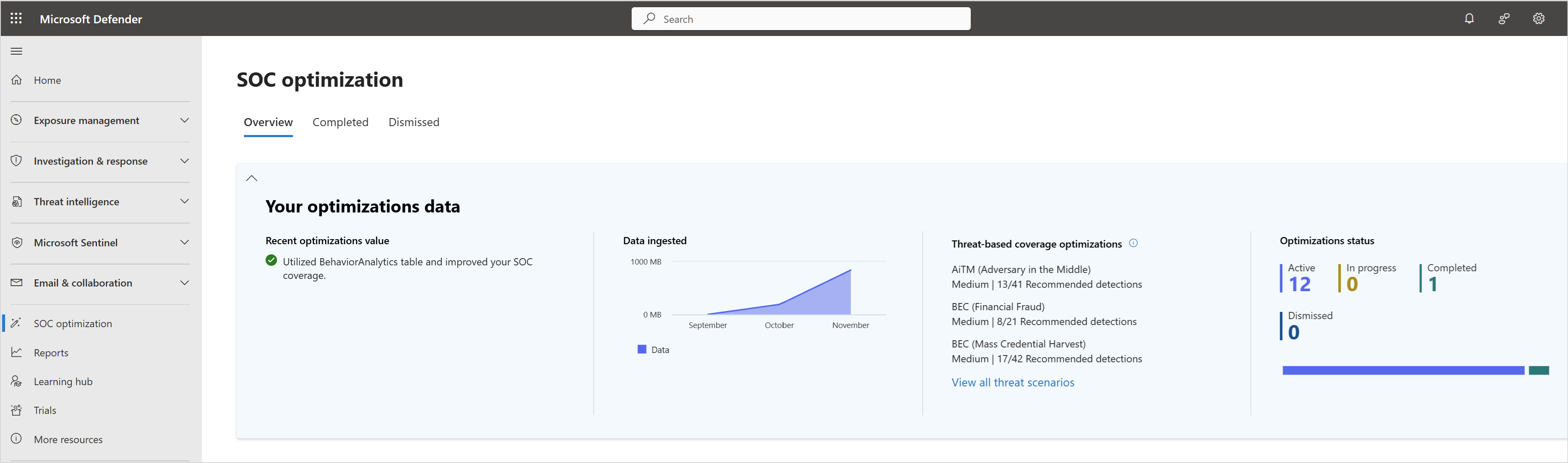In Gestione dell'esposizione esaminare lo stato complessivo del comportamento di sicurezza, dell'esposizione e del rischio.