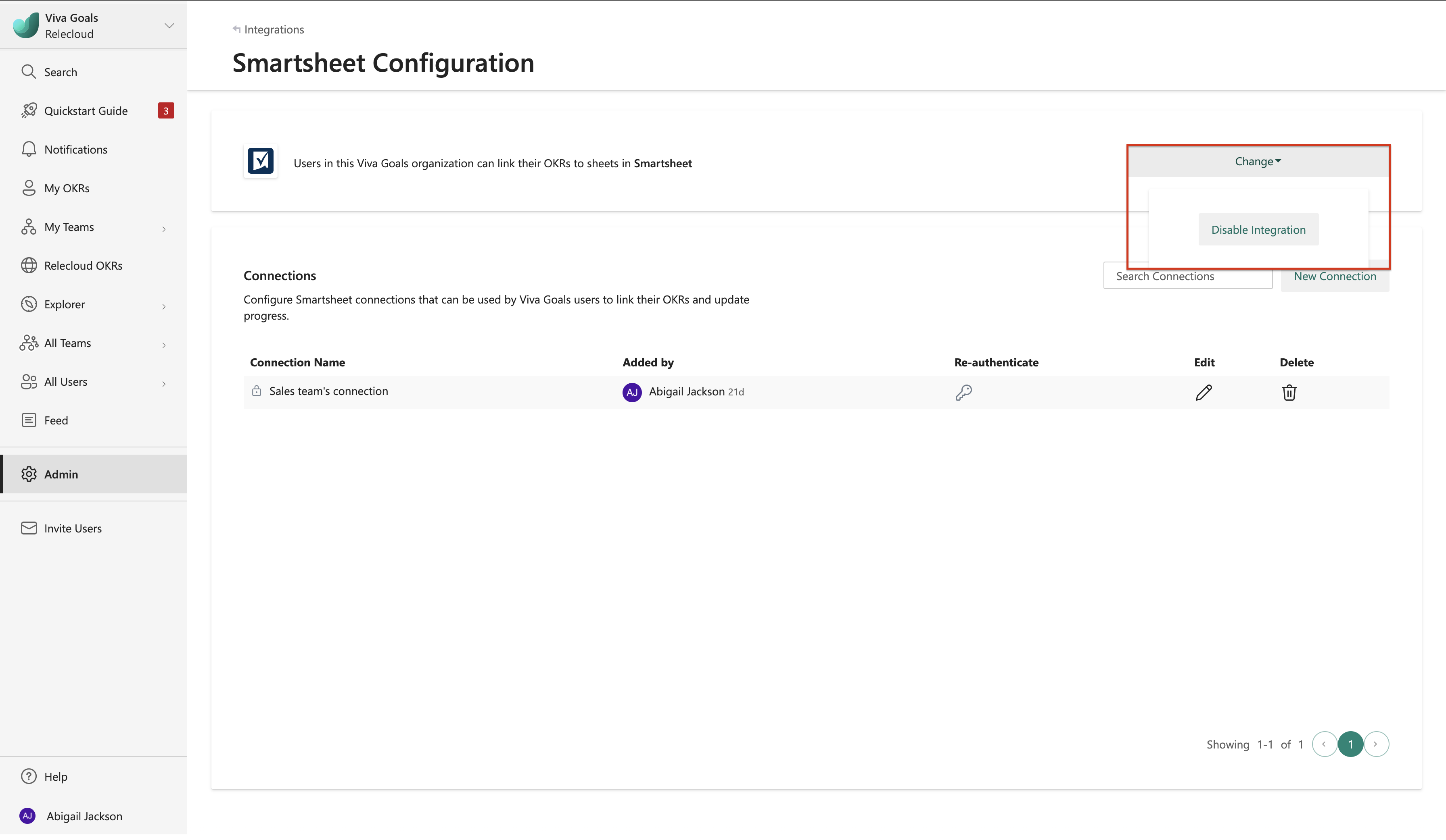 Passare alla pagina delle integrazioni del Viva Goals: Amministrazione>Integrations.