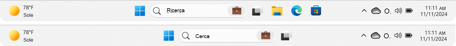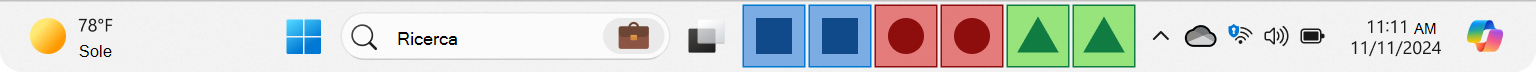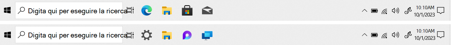 In un aggiornamento del sistema operativo Windows, le app sono già aggiunte alla barra delle applicazioni. Il layout della barra delle applicazioni applica la logica seguente: