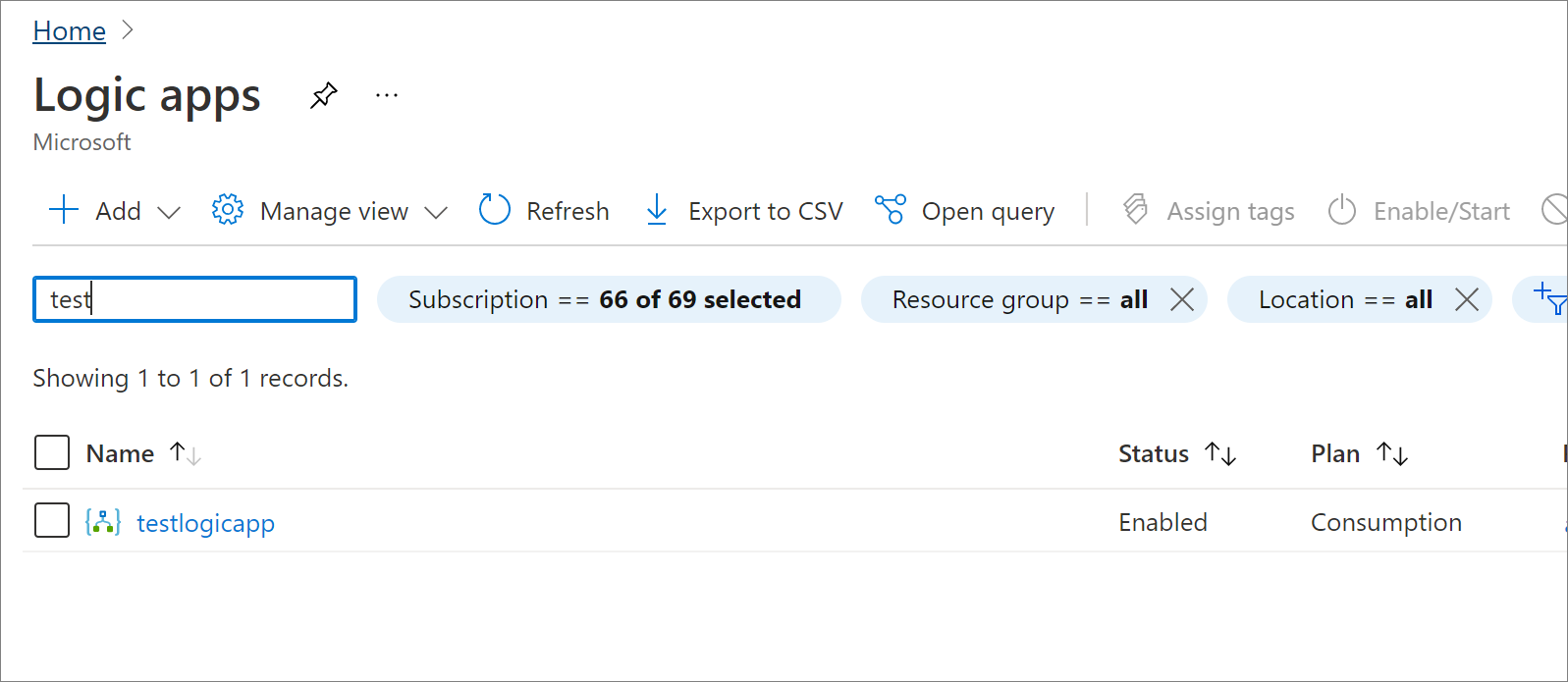 作成したロジックアプリの名前を検索し、リソースに移動します。