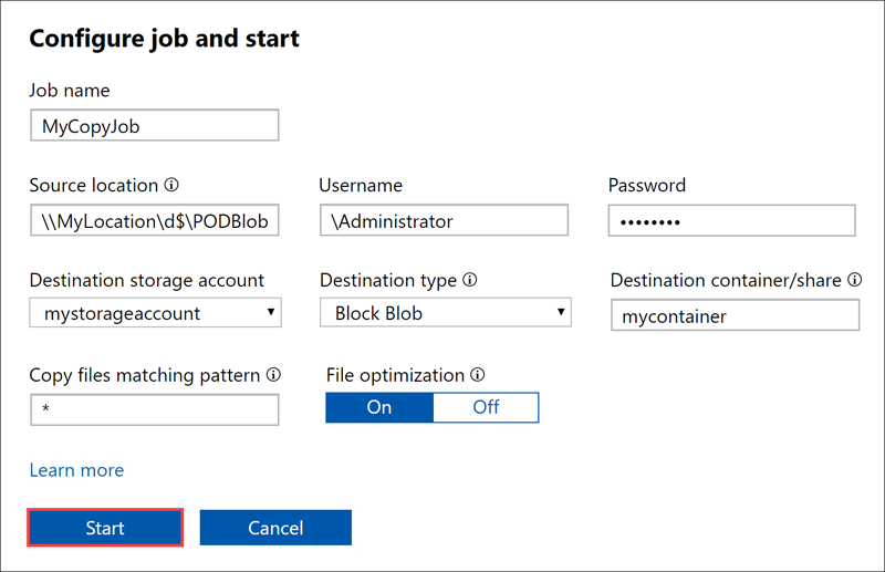 ![[ジョブの構成と開始] ダイアログ ボックス内の [開始] ボタンの場所を示すスクリーンショット。](media/data-box-deploy-copy-data-via-copy-service/configure-and-start.png)