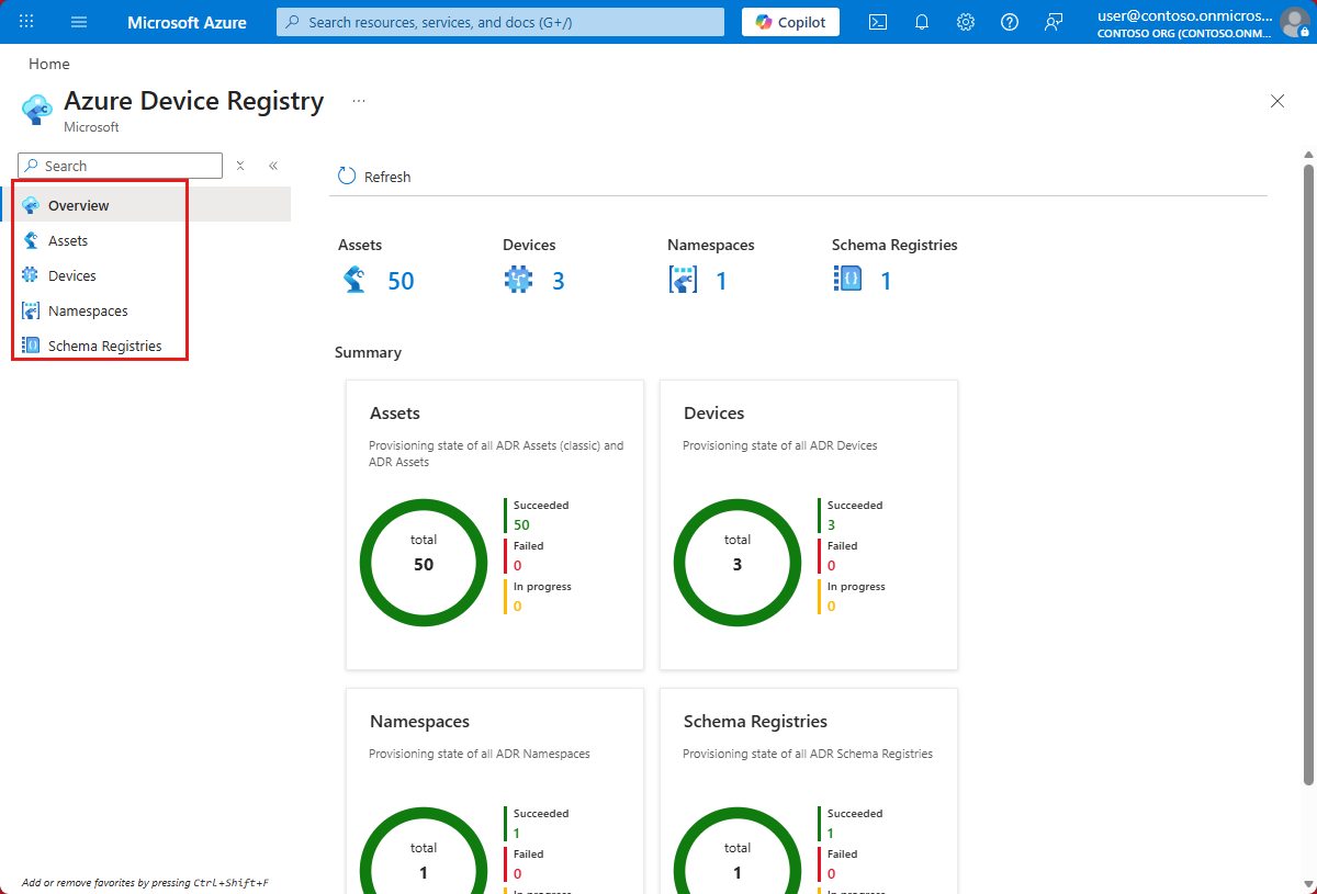 ポータルを使用すると、次の Azure Device Registry リソースを表示できます。