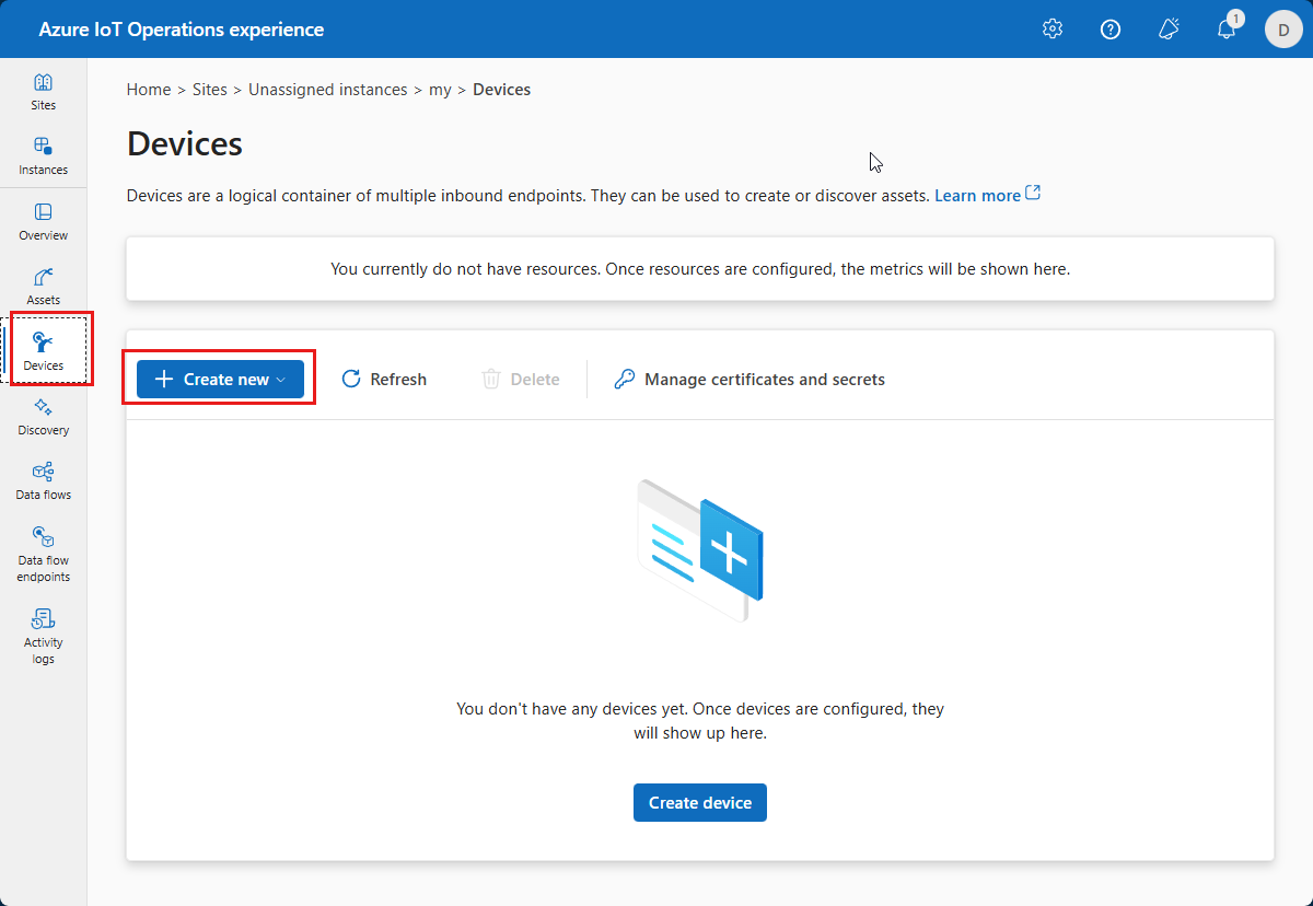 - 資産とデバイスを格納するための Azure Device Registry 名前空間。