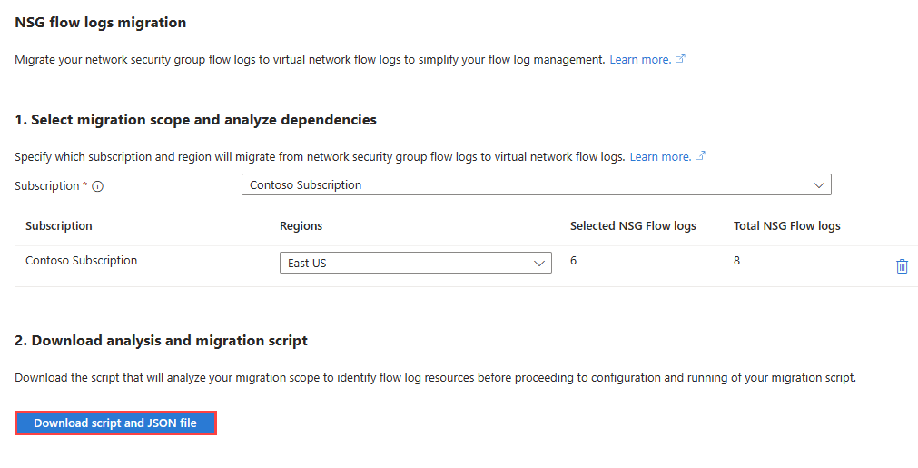 このセクションでは、前のセクションでダウンロードしたスクリプト ファイルを使用してネットワーク セキュリティ グループ フロー ログを移行する方法について説明します。