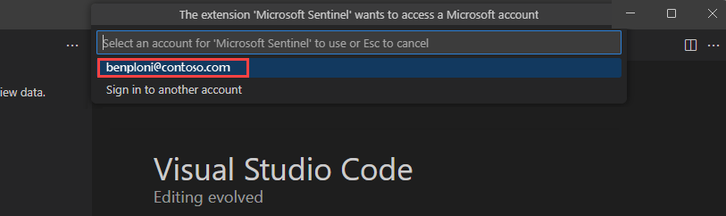 ダイアログが表示され、次のテキスト拡張機能 "Microsoft Sentinel" は Microsoft を使用してサインインしたいと考えています。 [許可] を選択します。