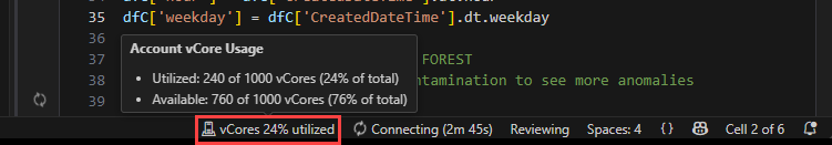 次のセクションでは、VS Code Notebook を使用する場合の Microsoft Sentinel Data Lake のサービス パラメーターと制限を示します。