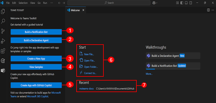概要: Visual Studio Code 内で Teams Toolkit の概要ヘルプを表示します。