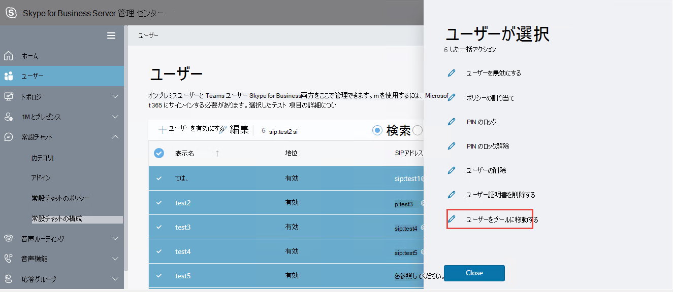 ユーザーを 2015 年Skype for Business Serverから Skype for Business Server 2019 に移動します。