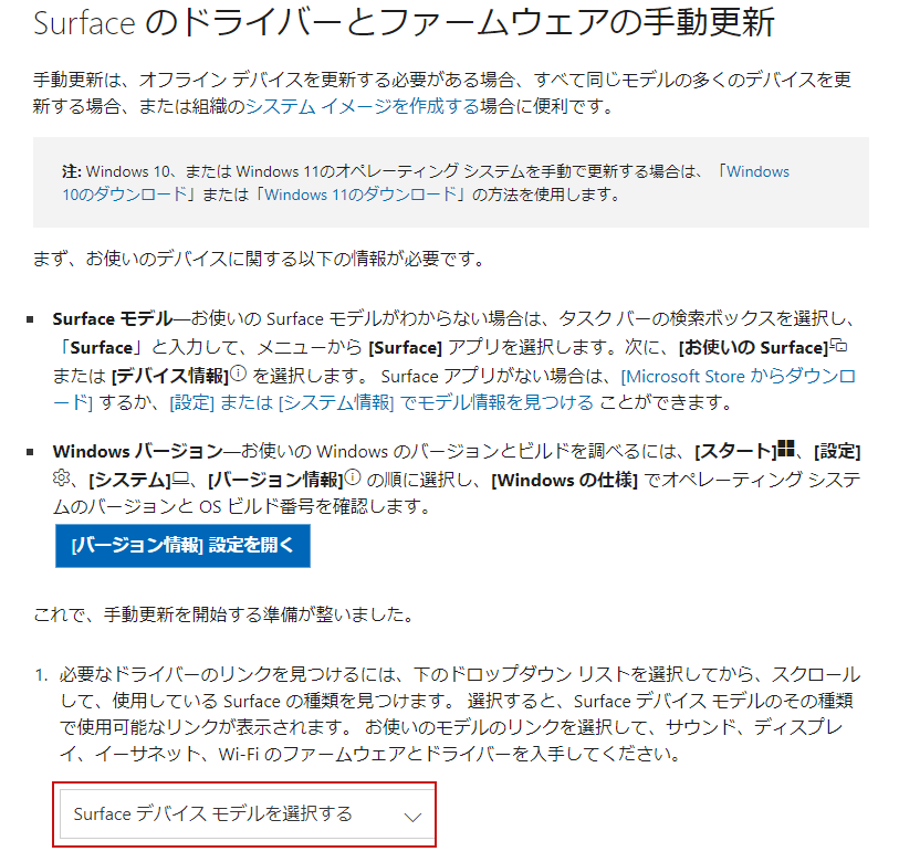 内の「Surface でバッテリー アイコンの状態を確認する」にてバッテリードライバの