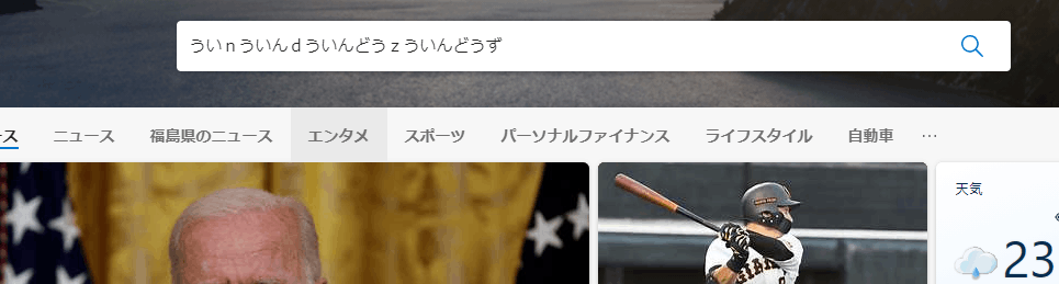 1カ月位前からだと思いますが、Edgeの検索窓にキーボードで「Windows」としたくひらがなで「U(う)I(い)N(ん)DO(ど)U(う)ZU(ず)」と入力すると添付画像のような繰り返しの表示になります。