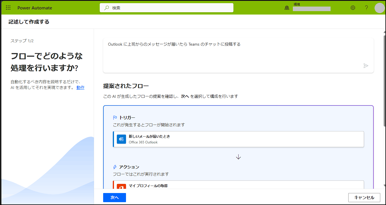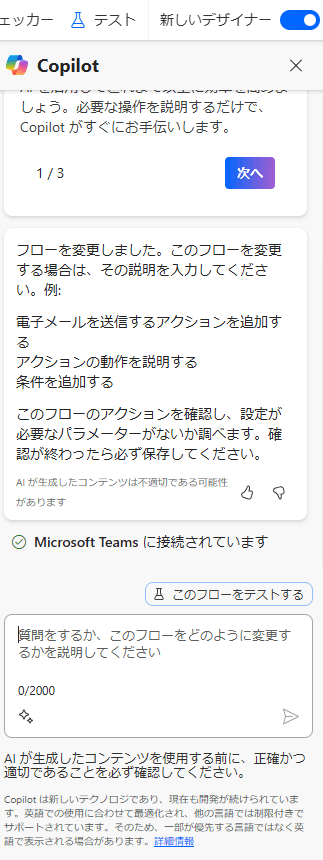 質問の「Power Automateのフロー作りをcopilot にお願いできますか?」をCopilot に質問してみましたか。