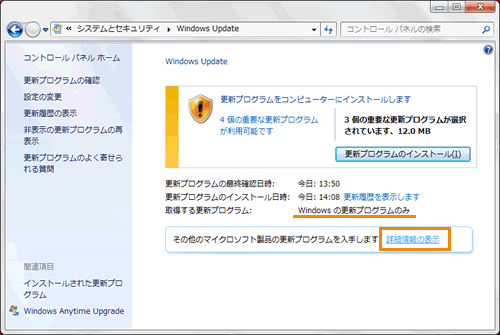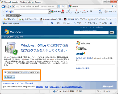 Windows Updateで重要な更新プログラムをインストールしInternet Explorerは10