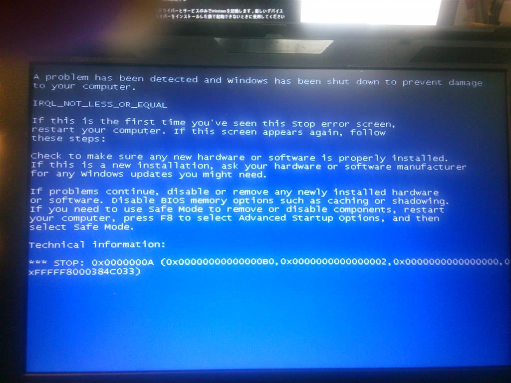 - スタートアップ修復するとブルースクリーンになる (BAD_POOL_HEADR と IRQL_NOT_LESS_OR_EQAL の2パターン)