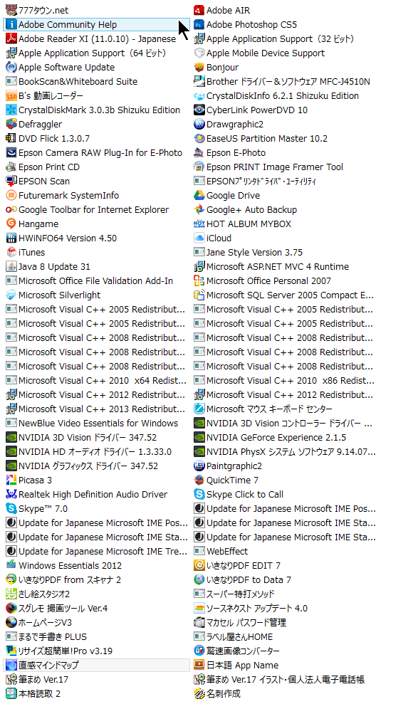 自分の場合の現在インストールされているプログラム:もし悪いのがあるならこの中のどれなのでしょう?