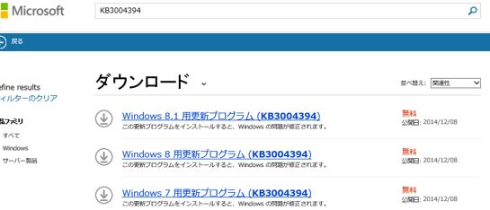 ・Microsoftダウンロードセンターから KB3004394 をDownoadできます。