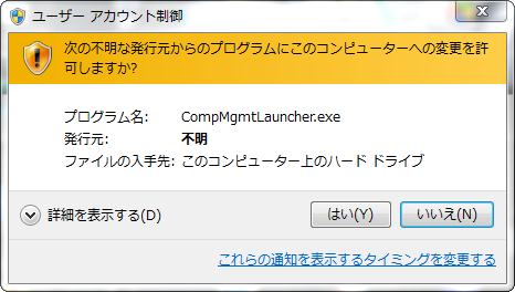 12月分のKB3004394(推奨)をインストールするとコンピュータの管理やデバイスマネジャー等を起動しようとするとユーザアカウント制御画面が表示され、プログラムの発行元「不明」となります。