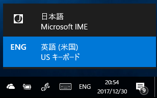 言語を複数追加してある場合は、Win+スペースキーを押すと入力方式が切り替えられます。