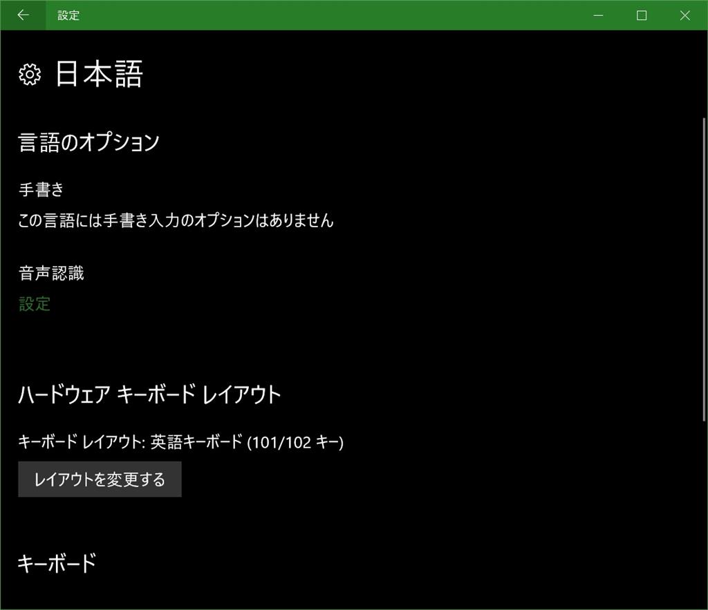 まず、「設定」-「時刻と言語」-「地域と言語」で「日本語」を選択し、「オプション」ボタンを押します。