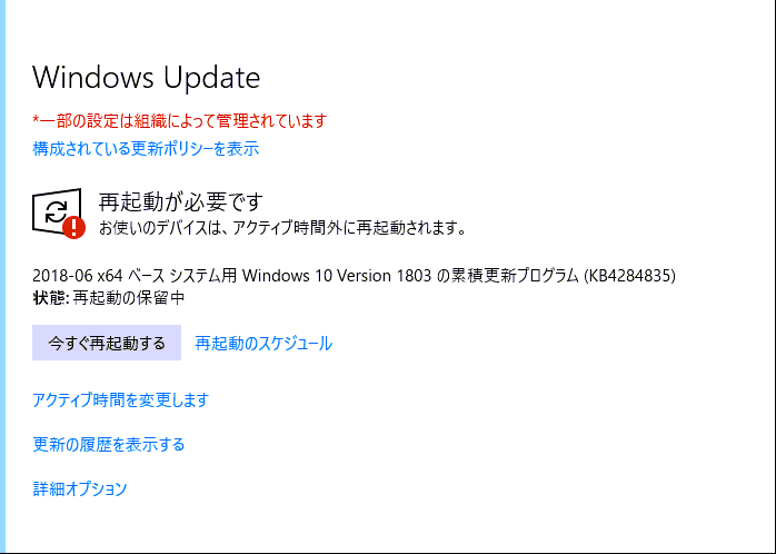 更新の適用後、「更新して再起動」「更新してシャットダウン」表示が消えないのですね。