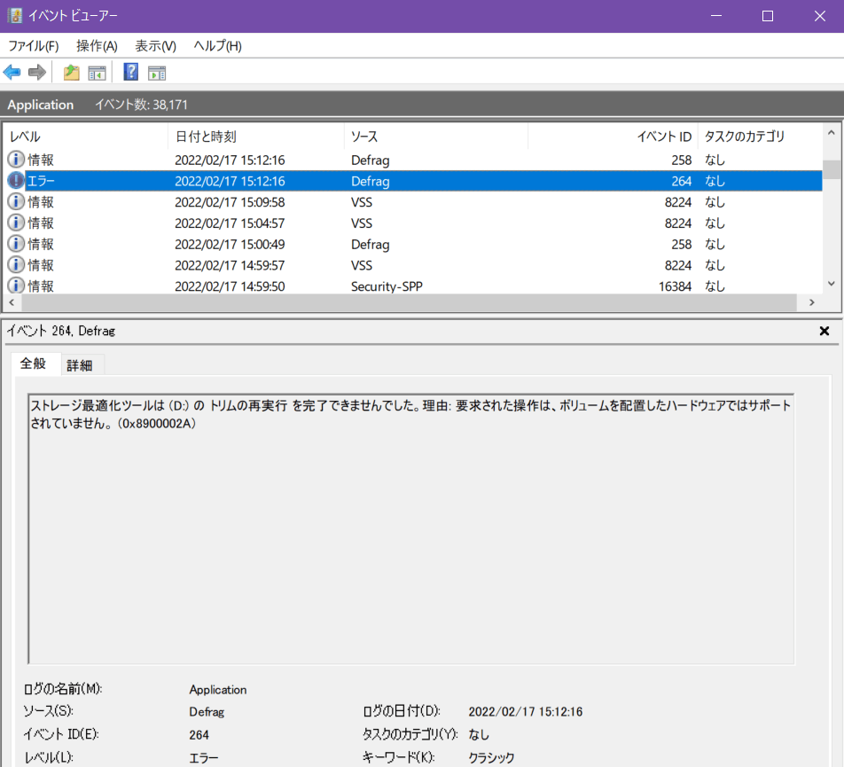 HDDをSSDと誤認しトリムの再実行を行おうとする。Build1904x.3208(Ver2004以降、現在サポート期間中はVer22H2)未解決。24.1/17時点