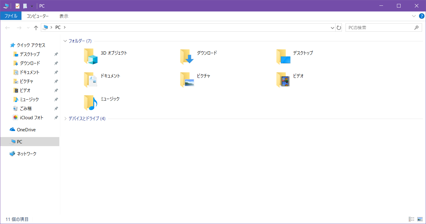 移動方法は「エクスプローラー」を開き、「PC」を選択