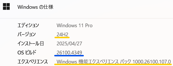 ★Release版(Ver24H2)・Build 26100.4349(25.6/11更新)【自動更新のみ表記】メインPC