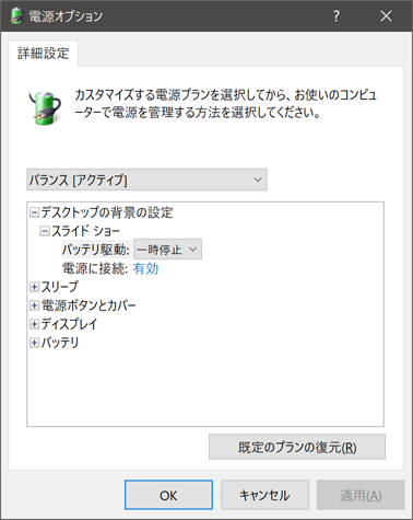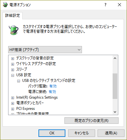 電源オプションの詳細設定のところには