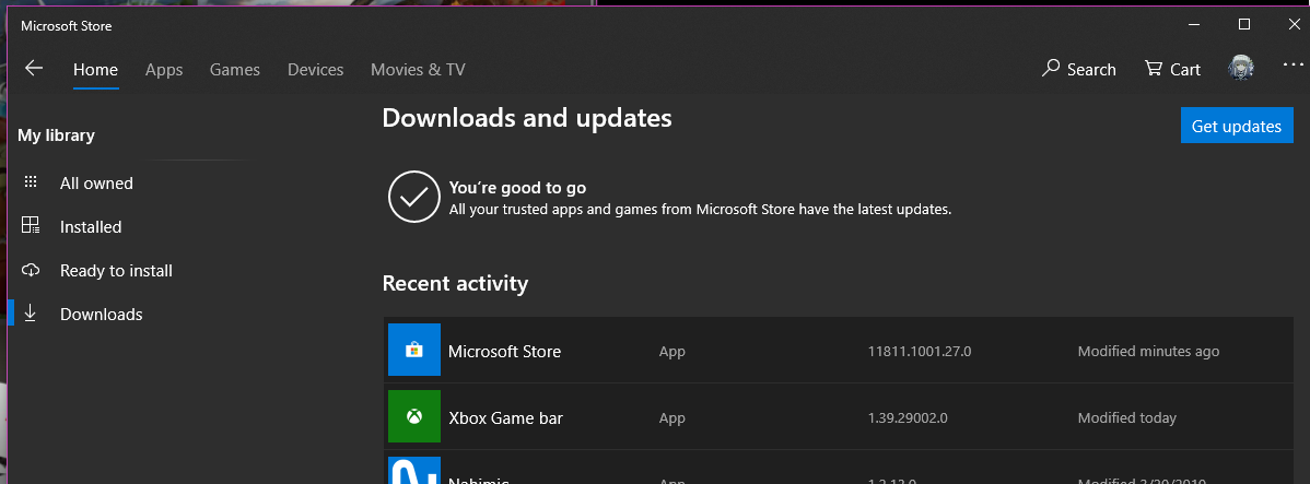 もう一度 Microsoft Store を開いて ... から「ダウンロードと更新」、「最新情報を取得する」で Store アプリが落ちてきませんか?