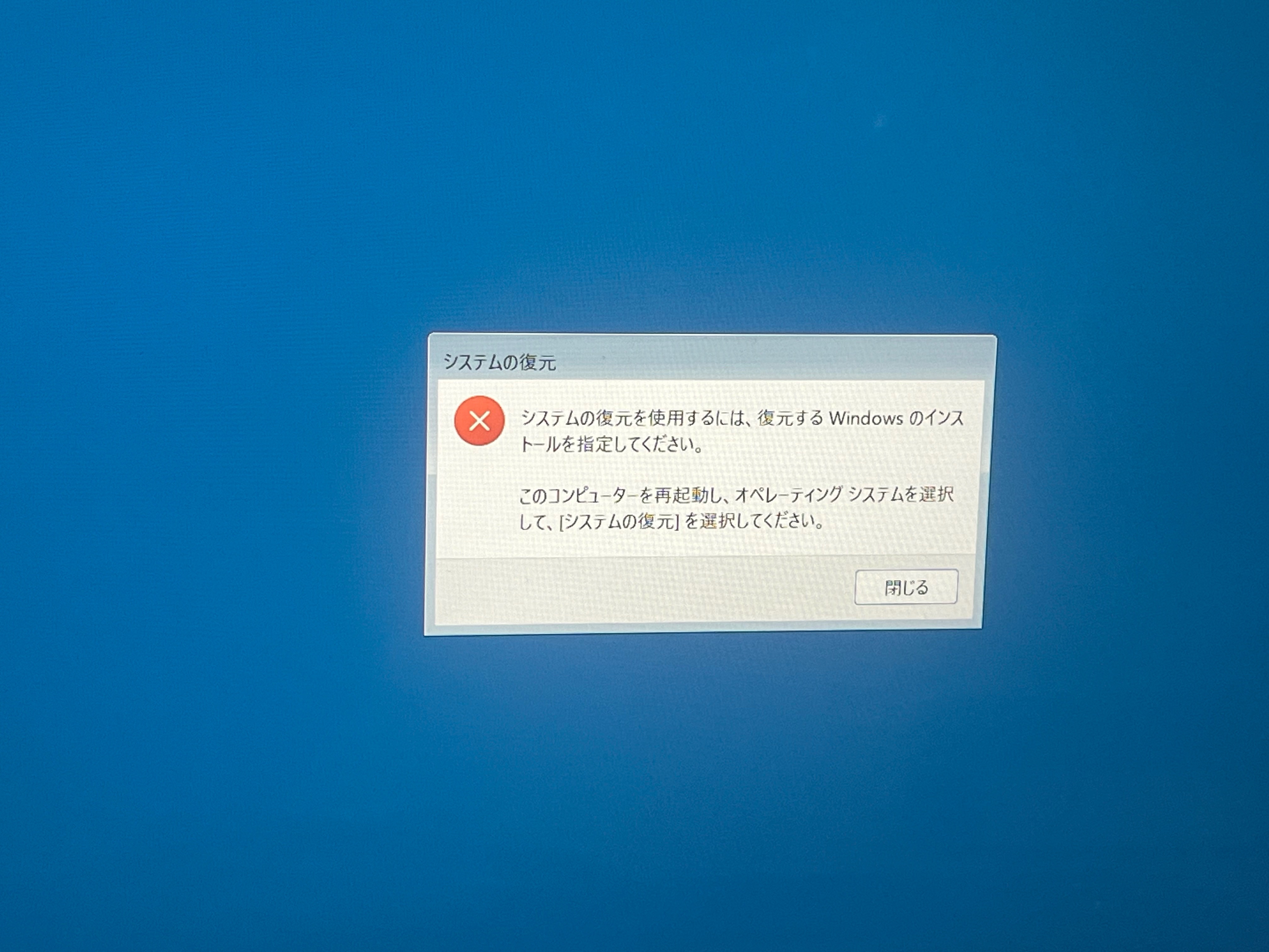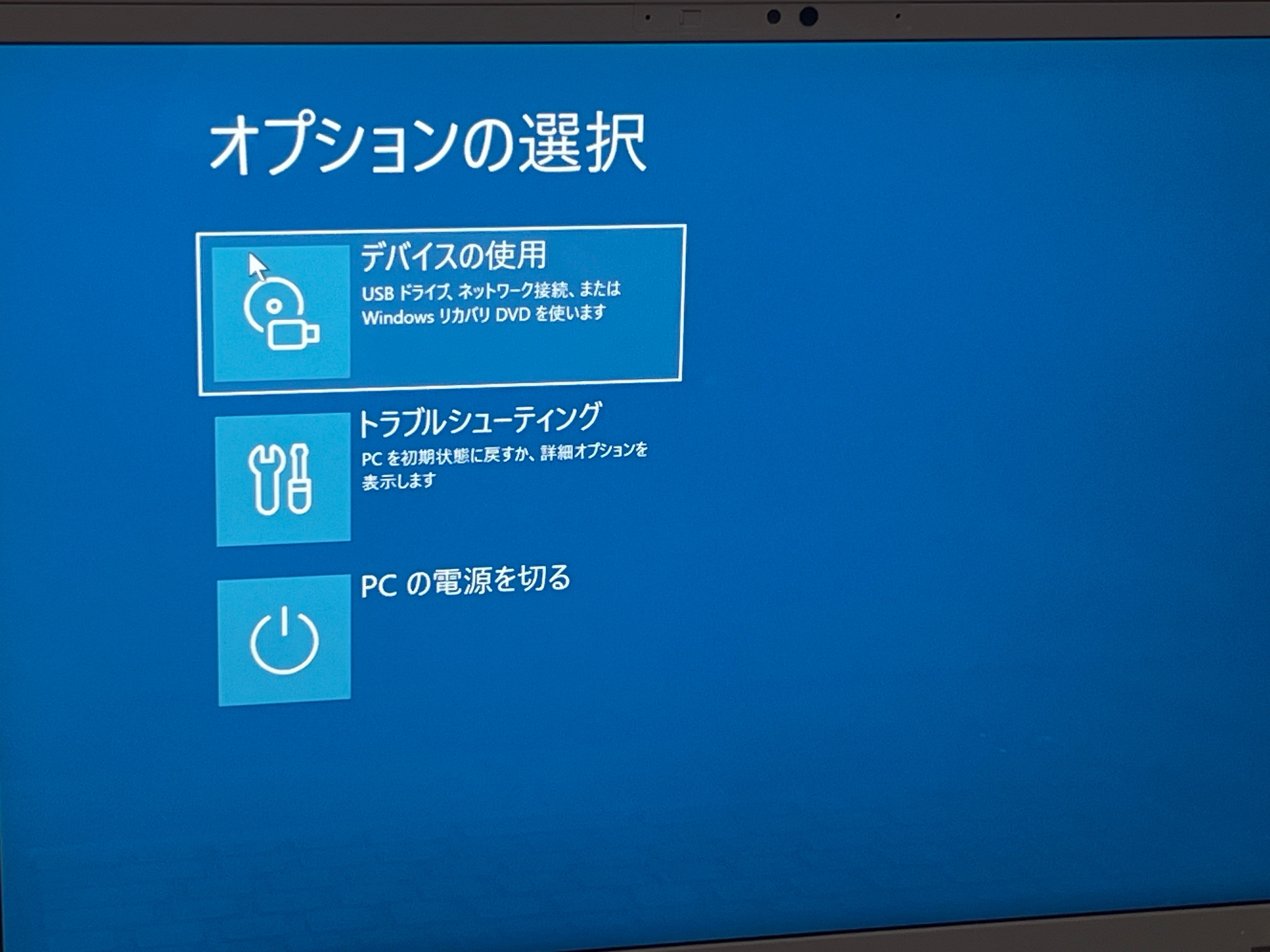 「トラブルシューティングの画面で電源ボタンを長押しして電源を切り、PCのコンセントを抜いて、少し待ってから電源を入れ直しました。」