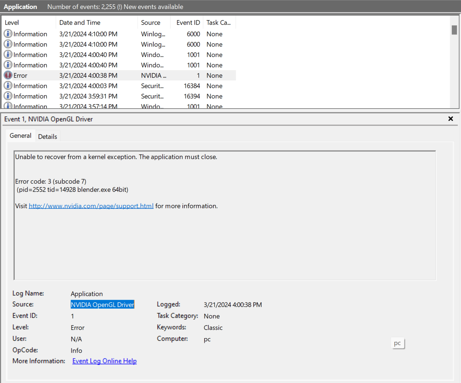 ネット上にはNvidia control panelのプリファレンス変更やRAMの周波数変更でエラーが消えたとの情報が散見されたのですが、どちらもこちらの環境では再現できない解決法でした。