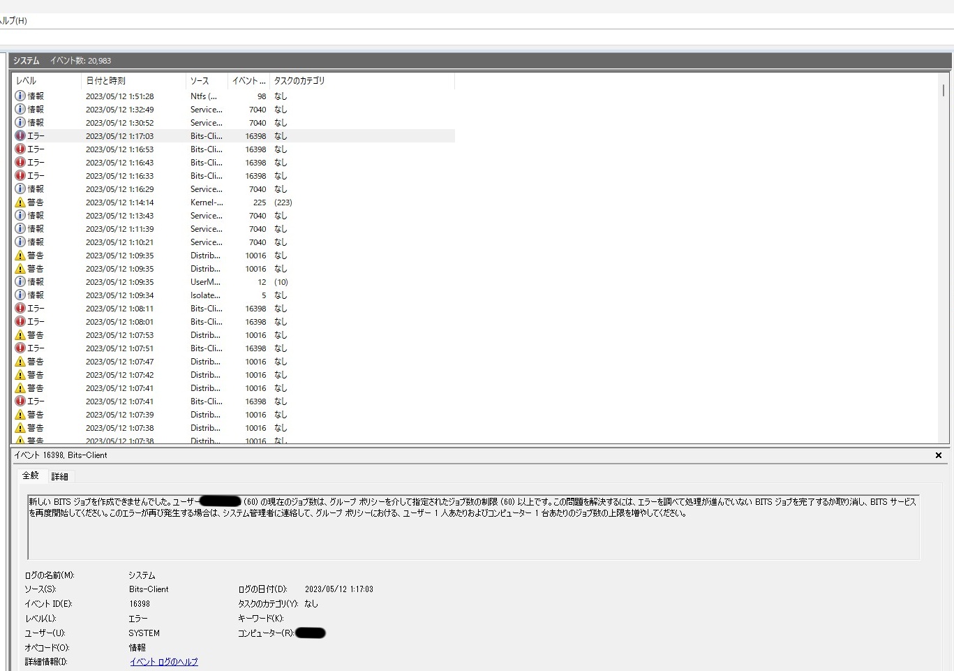 これで、今詰まっているジョブが出てきます。