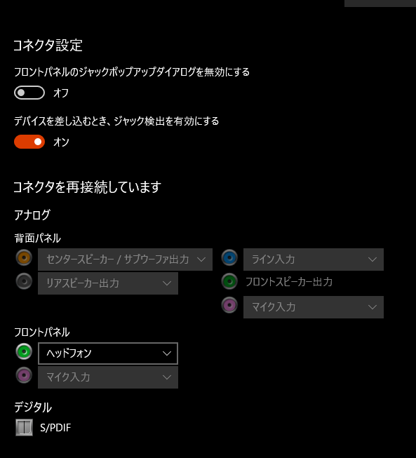 ヘンドフォンを接続しジャック検出した場合は(画像参照フロントパネルのヘッドフォン)色が明るくなります。