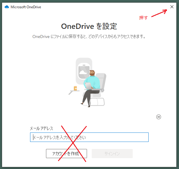 サインイン画面が表示されるので、右上の「X」を押して閉じる(サインインしない)