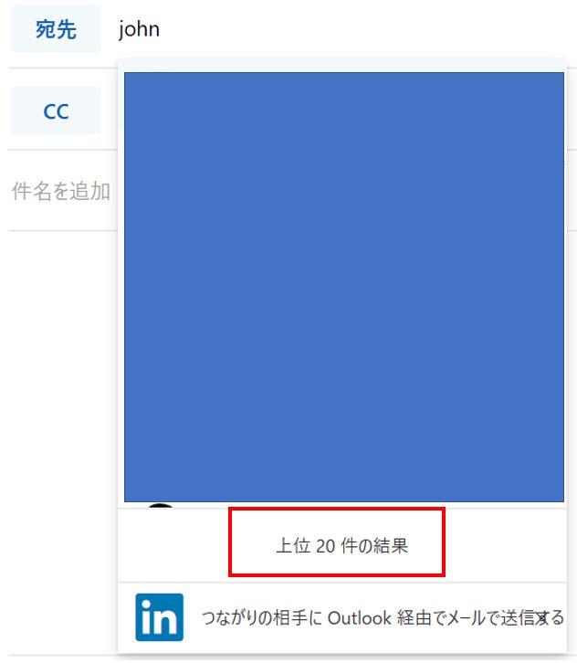 上位20件表示、よくやりとりする宛先が毎回とは限らず、過去に連絡先を登録している複数のリストから検索してメールを行うという運用が1日も早く行えるようになることを期待したい。
