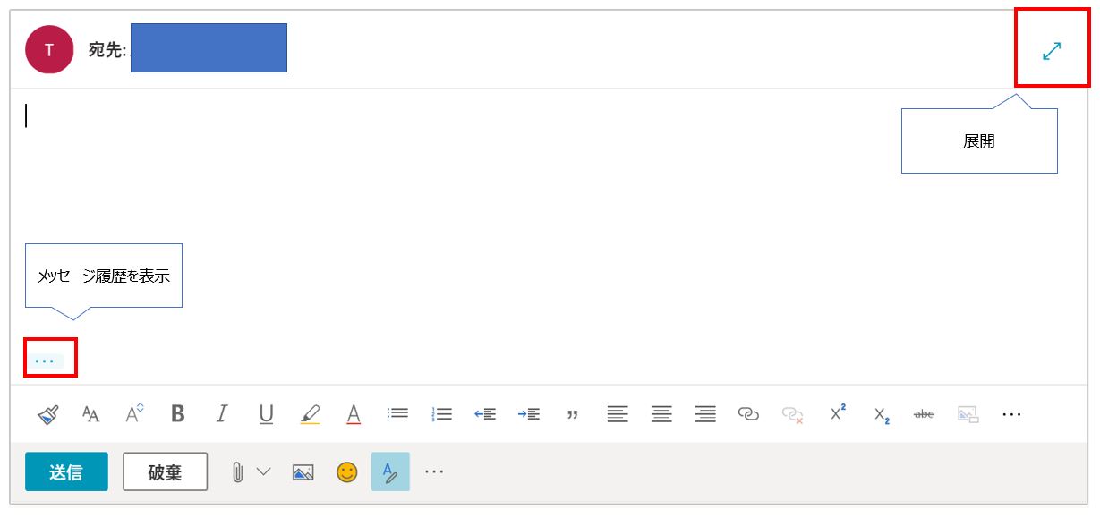 [1] 右上の [展開] もしくは、左下の [メッセージ履歴を表示] をクリックします。