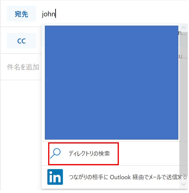 [1] 検索したい受信者名を宛先欄に入力し、[ディレクトリの検索] をクリックします。