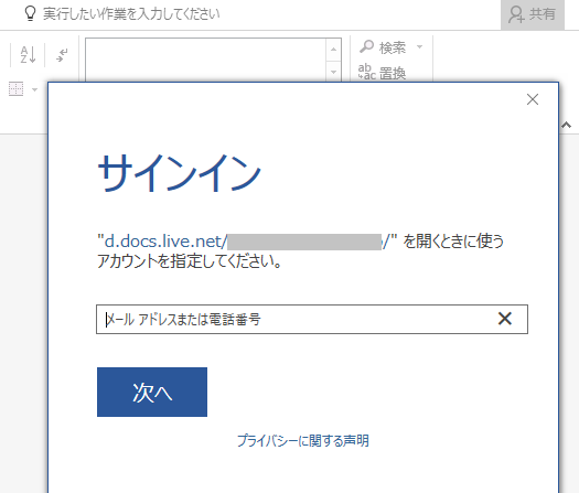 (同じアカウントでサインインしていれば OneDrive 上のファイルを開く際に「d.docs.live.net/~」へのサインイン画面は表示されません)