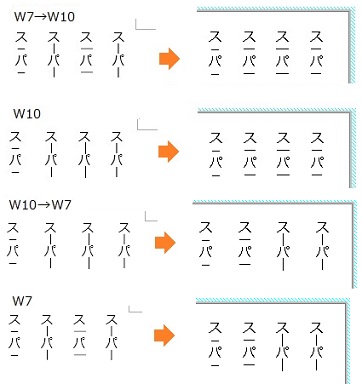 Windows 7 環境では、長音とダッシュは縦棒で印刷されましたが、Windows 10 環境ではすべて横棒で印刷されてしまいました。