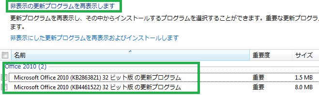 我が家のWindows7+Office2010 PC(通称「長老3号」)では上記プログラムのお行儀が悪いようで先週末に「重要」となっていたのでインストールすると、